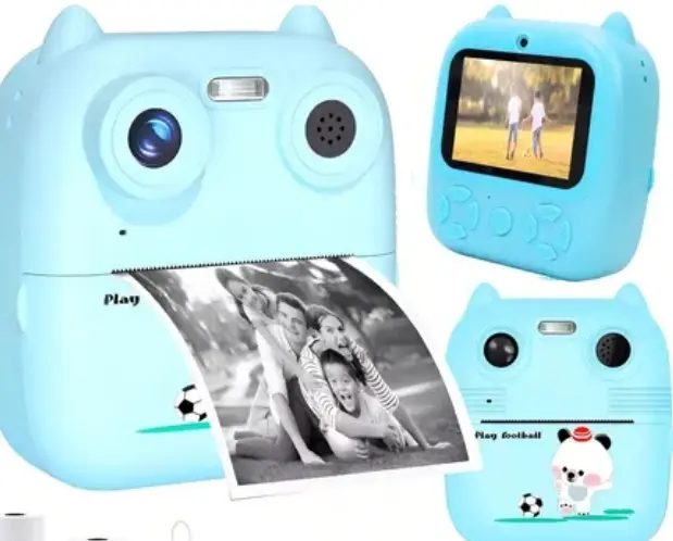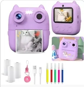 1 cámara de impresión para niños con 10 cm de alto x 9,5 cm de ancho X 4 cm de profundidad, 3 rollos de papel de impresión, kit con marcadores, 1 cable de carga, 1 correa para el cuello y 1 manual de usuario.